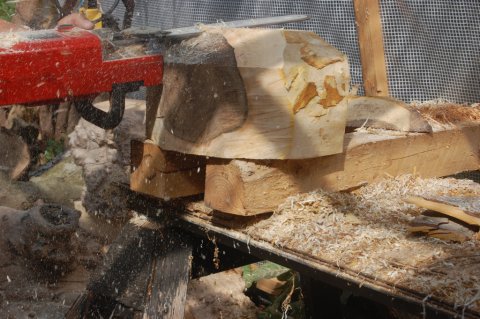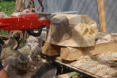 Det er også her, den første formgivning sådan set finder sted. Det er nemlig altafgørende, hvordan træet saves i grov form. Nogle gange skal jeg kikke på et stykke træ i dagevis, før jeg kan bestemme mig til, hvordan snittene skal lægges. Hvis dette gøres forkert, kan der ofte kun blive en meget lille skål (eller måske en lysestage!) ud af et kæmpe stykke, og så kan man så gå der og ærgre sig.....