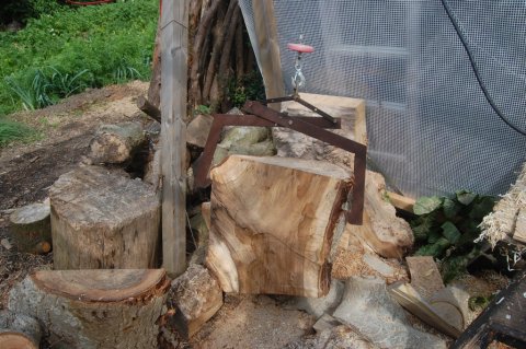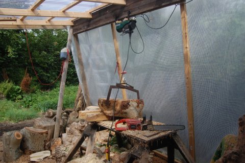 Læg mærke til hejseværket. Fantastisk godt, når man nu har erkendt, at Superman ikke længere bor her og ryggen ikke er helt god! Hejsen er såmænd købt i Lidl (!), og "saksen" er hjemmelavet inspireret af den skovsaks, min gamle far brugte sammen med sin Ford Klodsmajor i Stensgårds skove for mange år siden.