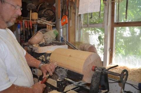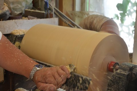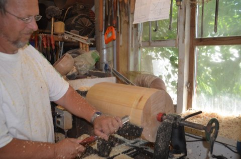 Så kunne klodserne drejes runde og med en reces til pynt. Derefter kunne jeg dreje hoved og fod efter nøjagtige tegninger.
